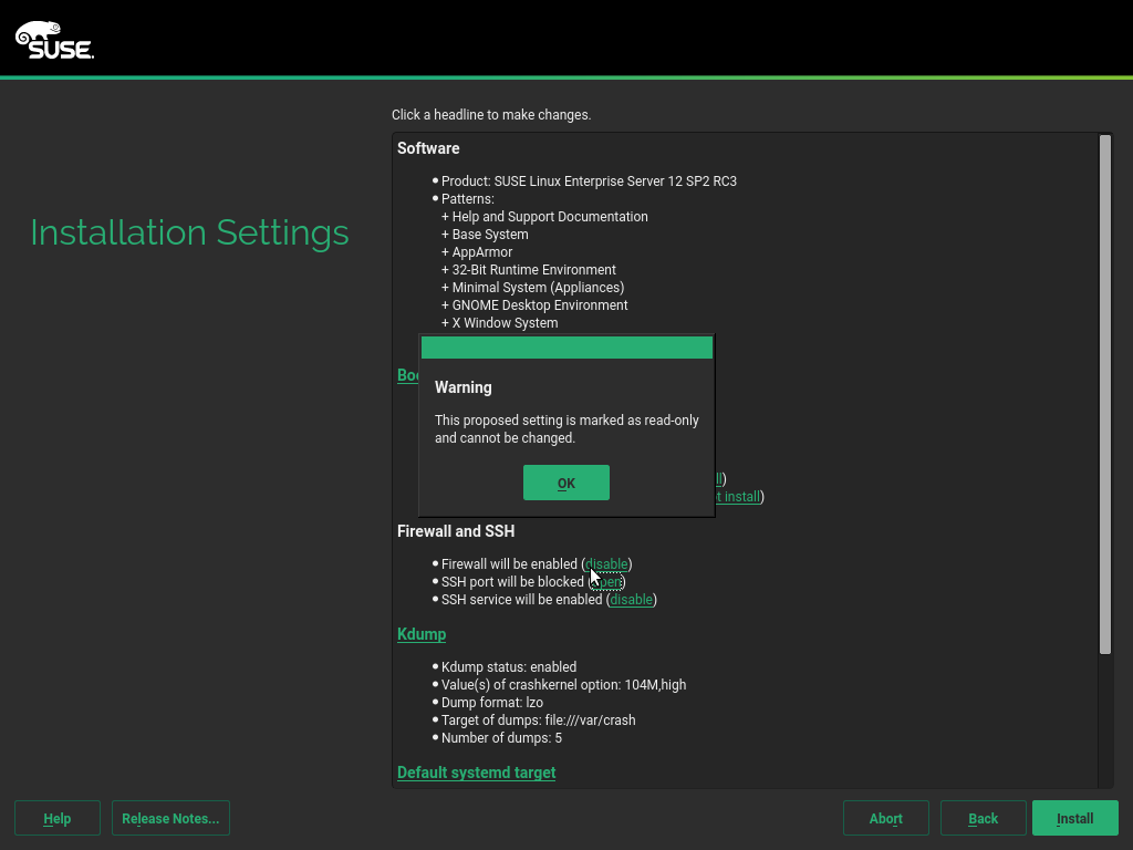 我们实现了一种将安装提案中的某些模块标记为只读的可能性。这些只读模块随后无法从安装程序启动,因此它们的配置保持在默认初始状态。