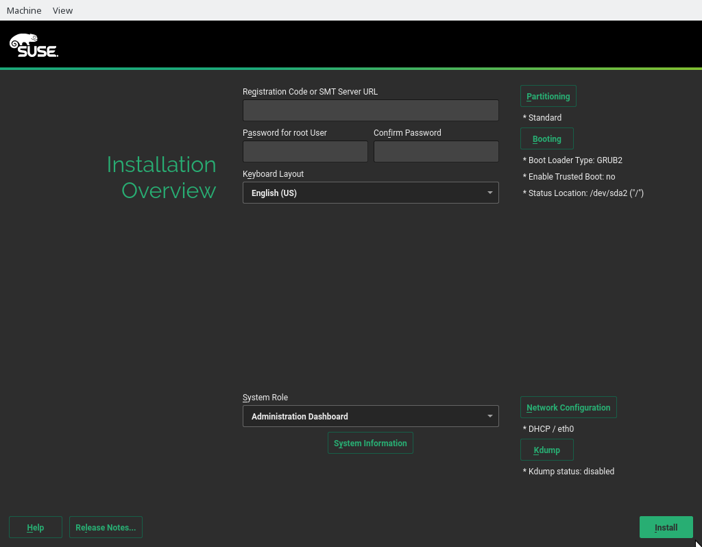 这个即将推出的产品也包含了一个使用老牌 YaST 的交互式安装选项。CaaSP 使用 SLE 可能性的一个有限子集,我们希望使安装更简单,以反映这一点。因此,我们减少了你必须点击的对话框数量……减少到仅剩一个!