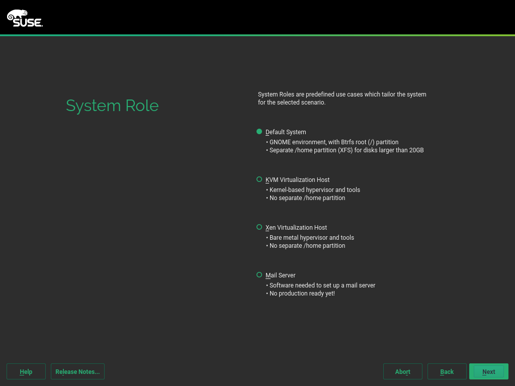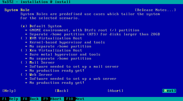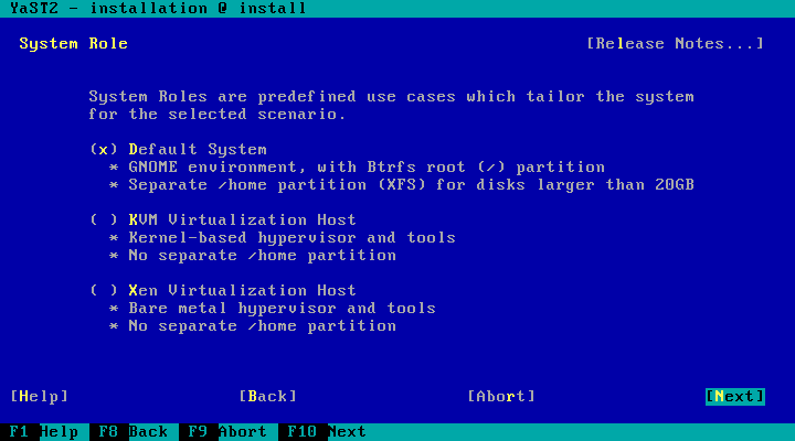 YaST 在调整/修改安装工作流程方面具有很强的可定制性。除其他外,允许附加组件调整工作流程(添加/删除步骤)、定义新的提案等。现在,它们还可以定义新的系统角色。