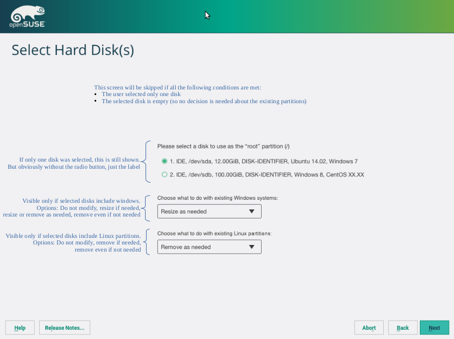 如前几份报告中所述,我们正在与 SUSE UX 专家密切合作,以设计安装程序分区提案和专家分区器的改进界面。我们已经向您展示了我们用作讨论分区提案基础的文件,包括结论以及所谓的引导设置的第一个非常简单的原型。