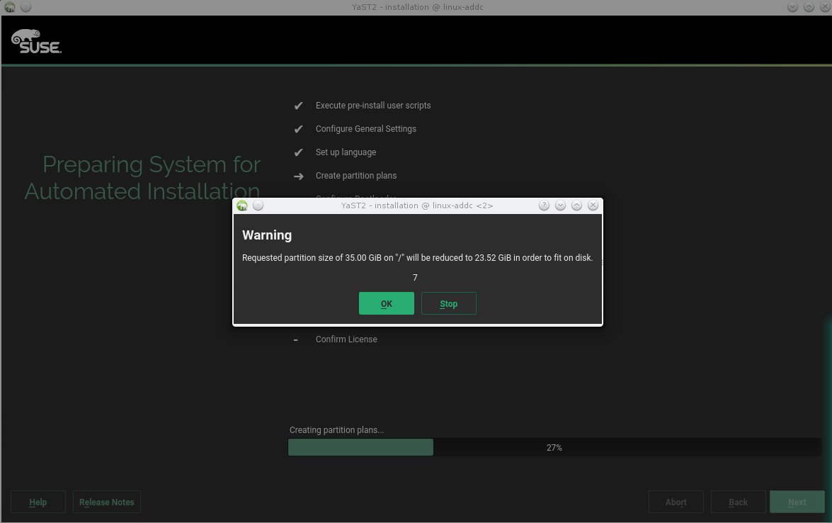 当然,新的警告使用标准的 AutoYaST 报告机制,因此即使用户不在屏幕前(在执行无人值守安装时非常常见),他们也会收到有关特殊情况的通知。
