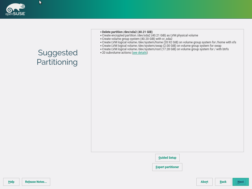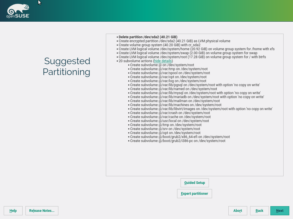 为了使过渡更轻松,并尽快将其提交到 Tumbleweed(希望在几个月内,与新的堆栈的其他部分一起),我们决定推迟任何 UI 重新设计。因此,这个新专家分区工具的第一版看起来和行为方式与当前 (open)SUSE 版本中的完全一样。