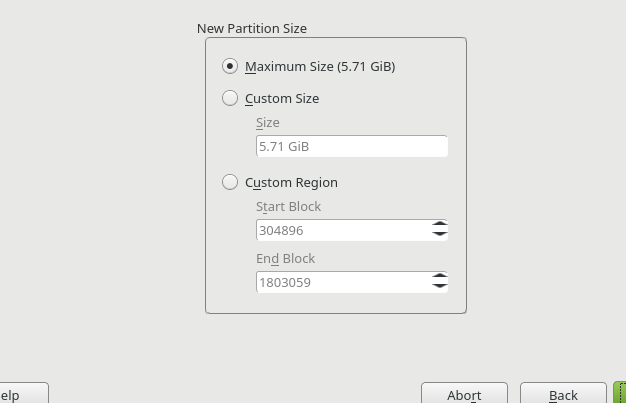 在上方,您可以查看用于选择新分区大小的对话框,不出所料,它看起来非常类似于 pre-storage-ng 专家分区程序中的相同对话框。如果用户在该对话框中指定了大小(表单中的前两个选项),则分区的开始和结束将对齐,以确保最佳性能并最大限度地减少间隙。这可能会导致分区略小(差异通常小于 1MiB)。如果指定了自定义区域,则开始和结束将尽可能地按照指定进行,没有性能优化(尽管强制对齐,例如 DASD 轨道,仍然会发生)。这是创建非常小分区的最佳选择。