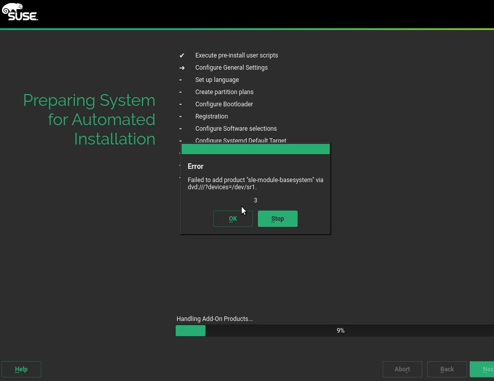 对于使用 SLE 附加产品的人员,我们改进了在 AutoYaST 安装期间无法添加附加产品时显示的错误消息。用户现在可以看到哪个配置错误的附加产品导致了错误。
