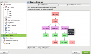 另一方面,“设备图”部分与分区器的其他大部分内容一样,是从头开始重写的。除了已经知道的显示系统在应用更改后将如何呈现的图形之外,它现在还包括一个单独选项卡中的当前系统表示。这两个图形都是交互式的,双击任何节点会将用户带到分区器中相应的部分。