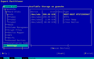 当然,如果使用基于文本的 ncurses 界面,则“设备图”部分不可用,如比较以下屏幕截图的左侧部分与之前的截图所示。