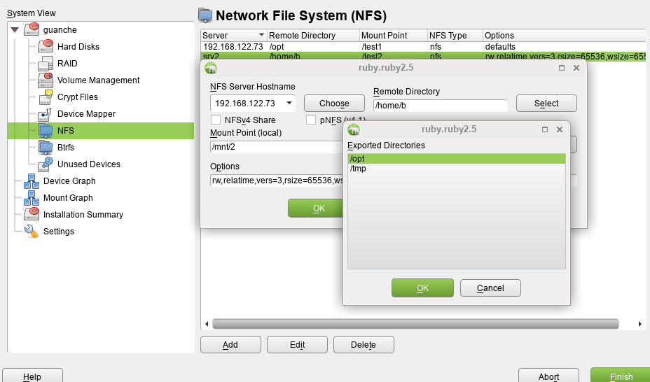 我们继续将旧分区器的功能带回到 Storage-ng 的重新实现中。在此冲刺期间,轮到 NFS 和设备图部分了。