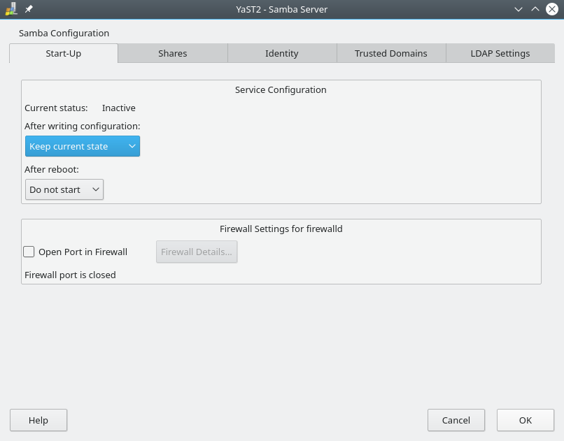 如你所知,有几个 YaST 模块允许我们的用户设置几个服务,如 DNS、DHCP、Samba 等。所有这些模块都提供了一种配置如何以及何时启动这些服务的方法。