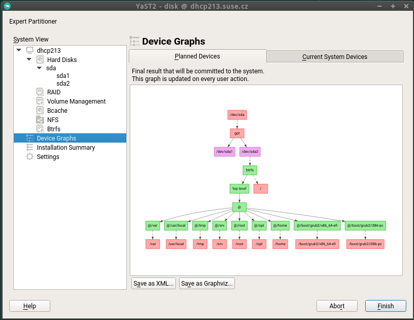 分区模块有一个图形视图,可以帮助你查看更复杂的存储设置中的关系