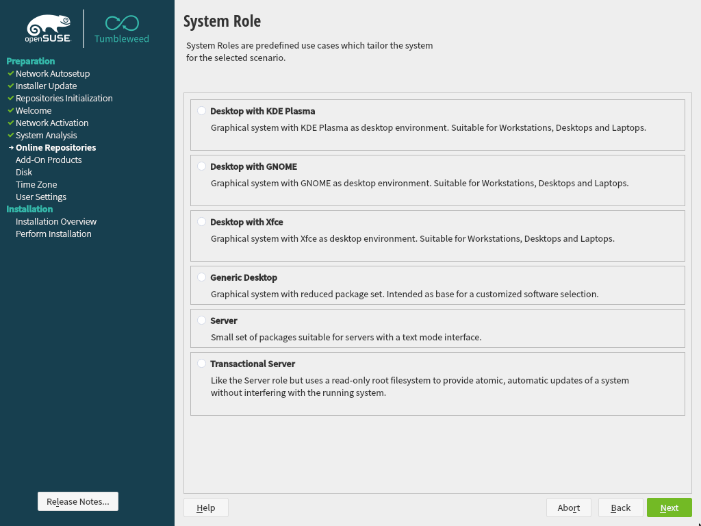 循序渐进地,我们继续改进用户体验,利用新添加到 libyui 的小部件。本次冲刺轮到更新角色选择对话框,以使用在冲刺 87 中引入的 新的项目选择器。除了如下截图所示,外观更好之外,还有两个直接的改进