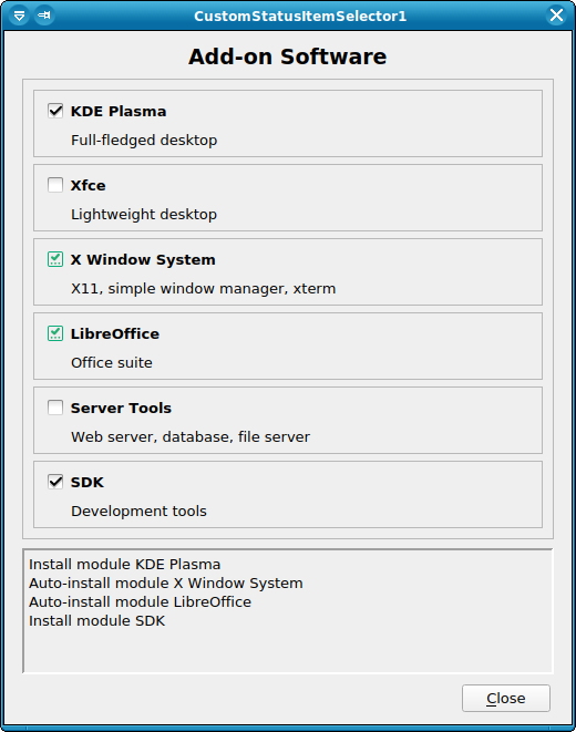 几周前,我们写了关于正在进入 YaST 用户界面的新 ItemSelector 小部件的文章。事实证明,在某些情况下,简单的开/关状态是不够的,因此我们必须扩展该概念。例如,软件模块可能有依赖项,我们希望显示用户显式选择的一个与由于其他软件模块需要它而自动选择的一个之间的区别。