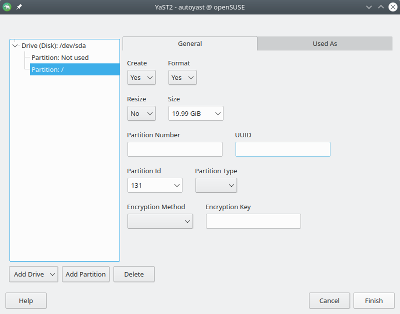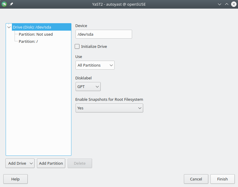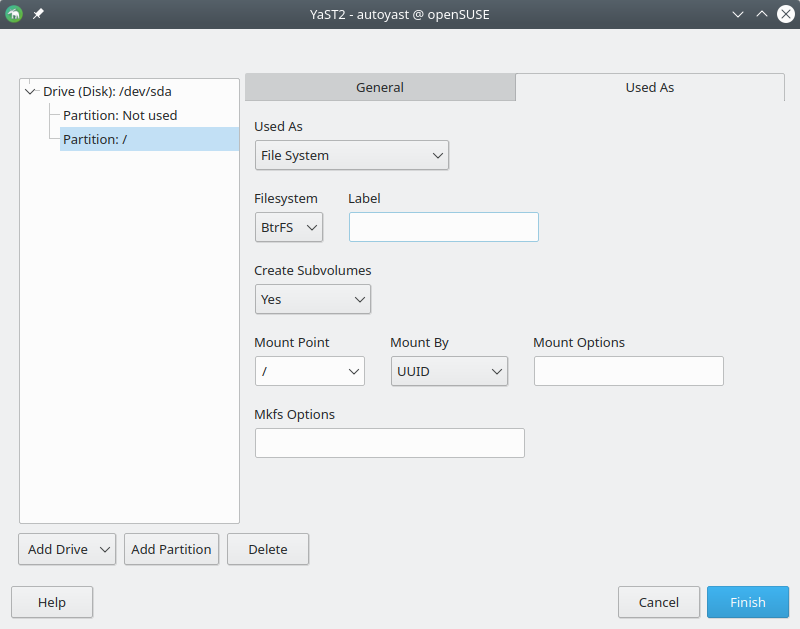 AutoYaST UI:改进驱动器编辑