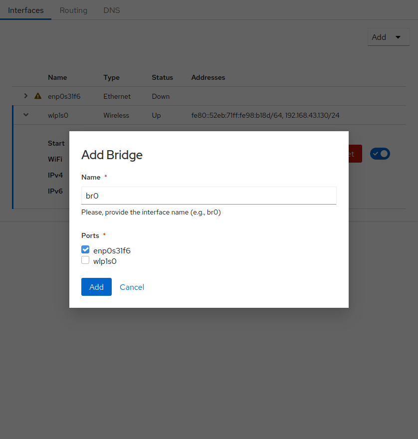 Cockpit 已经提供了一个不错的模块来配置网络,因此您可能想知道为什么不扩展原始模块而是创建一个新模块。 Cockpit 提供的模块是针对 NetworkManager 的,将其适配到不同的后端可能很困难。
