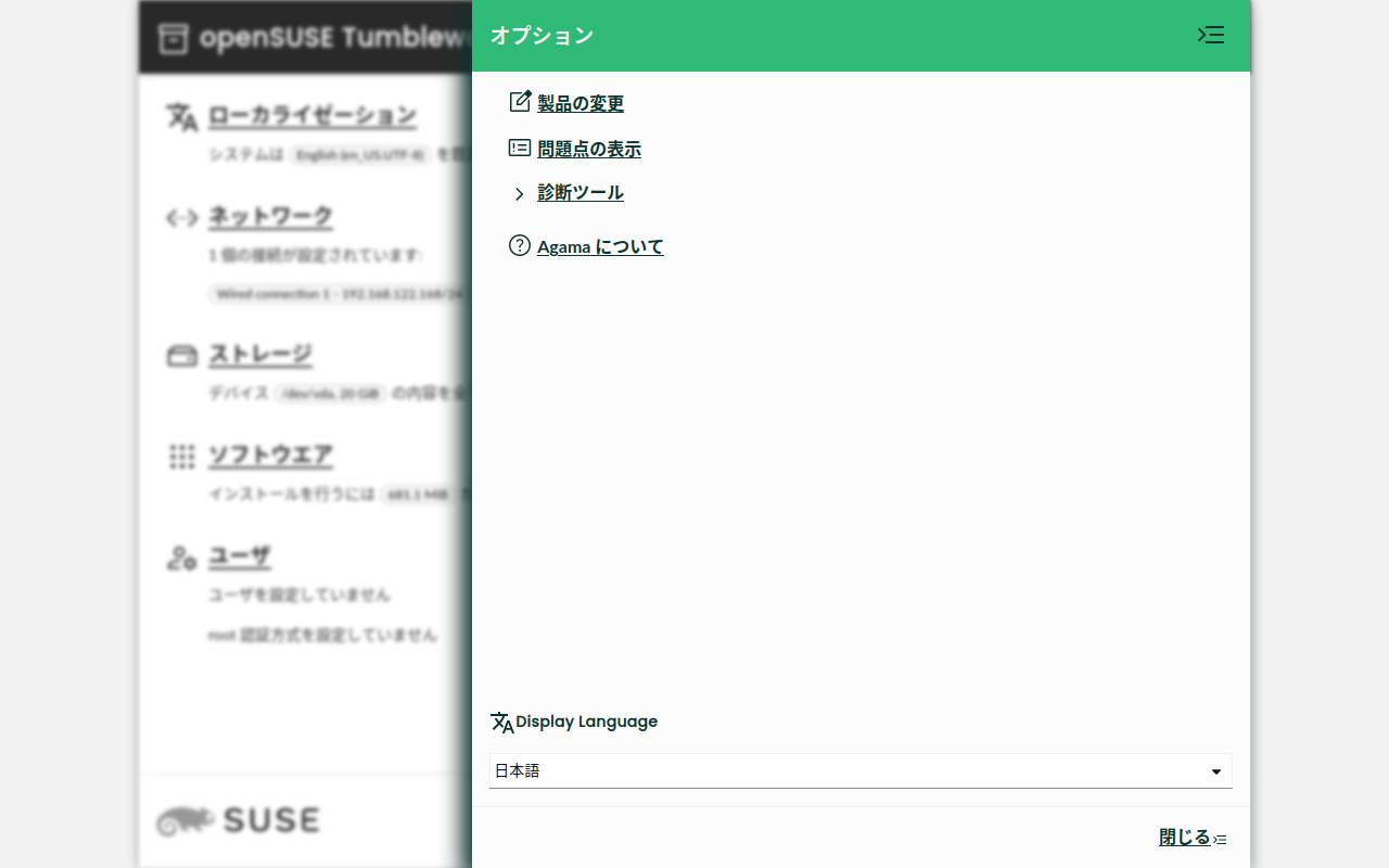 Agama 5 包含了一些我们已经进行了一段时间的更改,例如翻译后的网页界面或软件模式选择器。此外,它还对存储区域进行了一项更改,不再重用预先存在的交换分区。最后但并非最不重要的一点,现在您可以通过 PXE 启动 Agama Live。