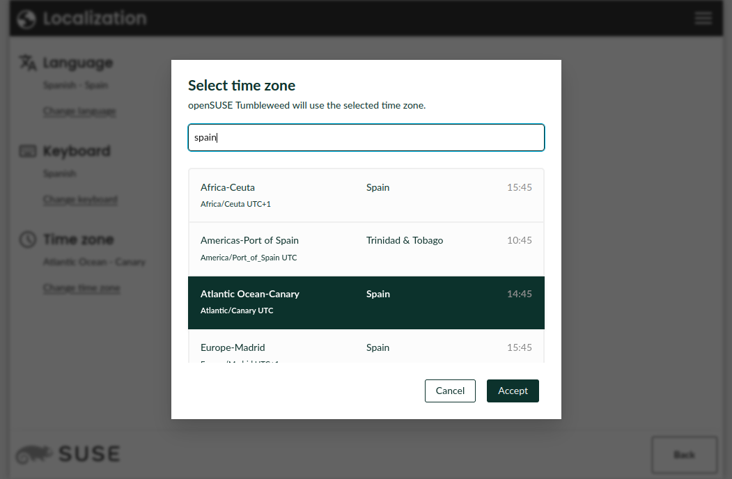 与以前版本相比,最重要的变化之一是可以完全配置要安装系统的所有本地化方面。这包括语言、键盘布局和时区。